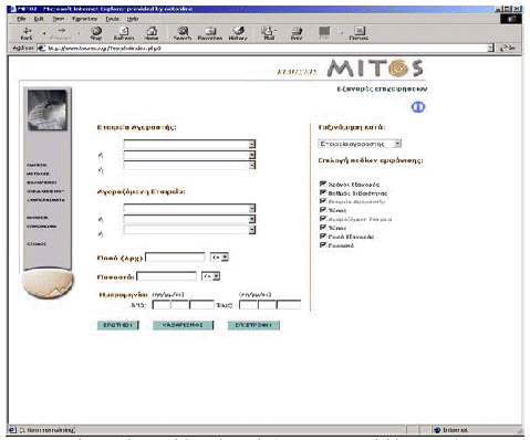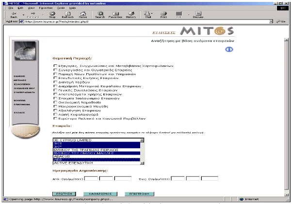 The users commented that the functionalities provided by MITOS system were useful. By being able to test the system using real data they could better appreciate its utility. However, they requested major improvements to the user interface, which seemed to be poor and unattractive. The limited attention that was given to the design of the user interface prohibited users of appropriately assessing the system’s functionalities. They also mentioned, the lack of a detailed online help. Besides the improvements in the MITOS web site appearance, the users also suggested to incorporate some additional functionality. Although they were satisfied from the provision of two ways of search, they recommended adding the feature of searching by using company names. They also proposed the provision of an extra Web page, which would include the most recent news of interest, in the form of a personal newsletter.