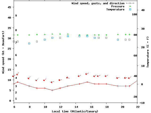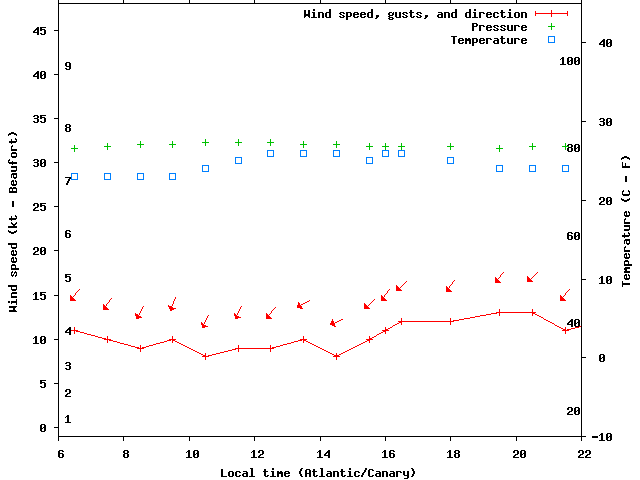 Dawn after 6:00; dusk before 22:00 local time (Atlantic/Canary).