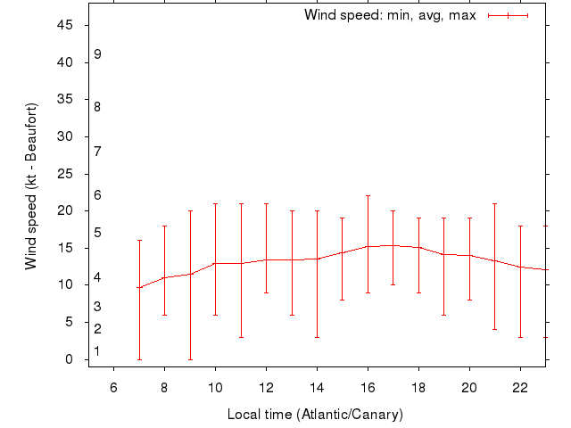 Dawn after 5:00; dusk before 23:00 local time (Atlantic/Canary).