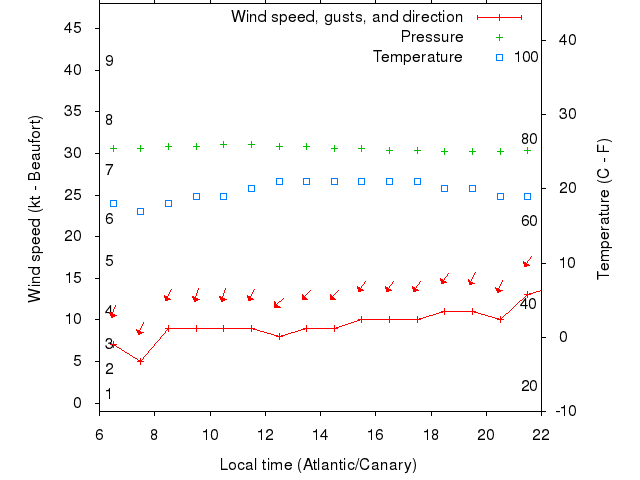 Dawn after 6:00; dusk before 22:00 local time (Atlantic/Canary).