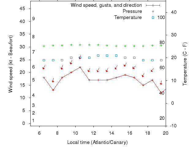 Dawn after 5:00; dusk before 20:00 local time (Atlantic/Canary).