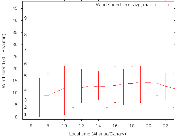 Dawn after 5:00; dusk before 23:00 local time (Atlantic/Canary).