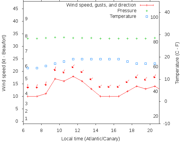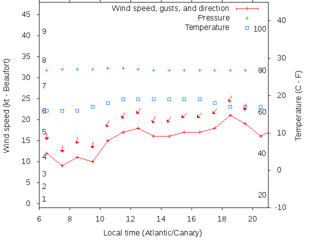 Dawn after 6:00; dusk before 21:00 local time (Atlantic/Canary).