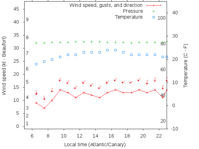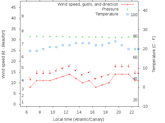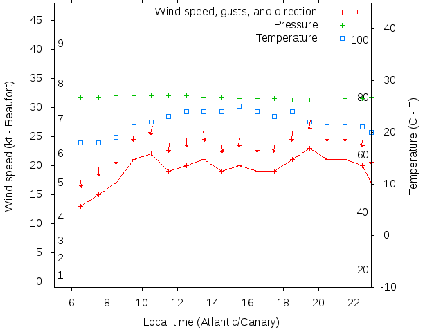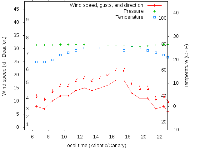 Dawn after 5:00; dusk before 23:00 local time (Atlantic/Canary).