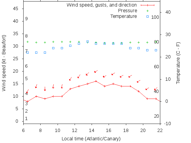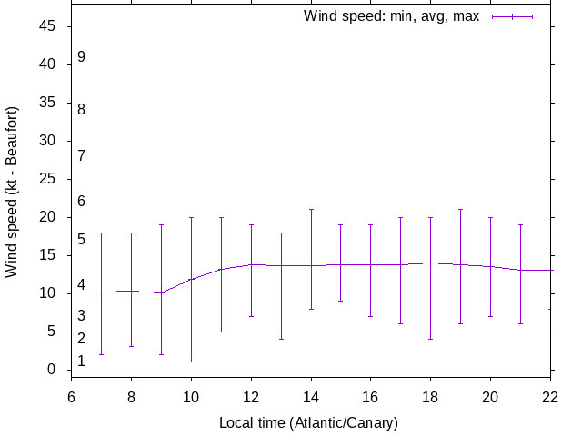 Dawn after 6:00; dusk before 22:00 local time (Atlantic/Canary).