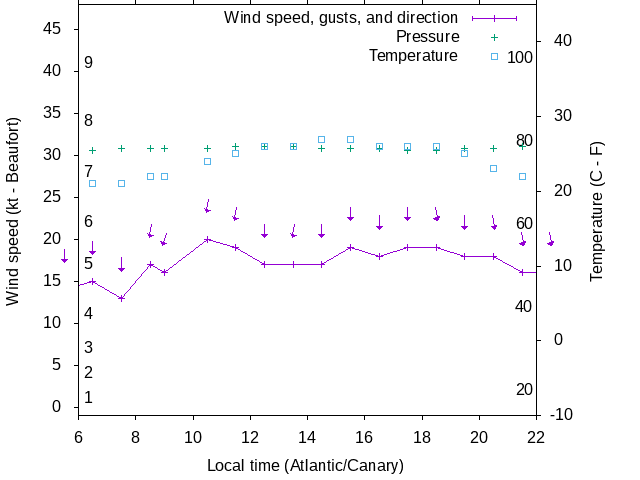 Dawn after 5:00; dusk before 23:00 local time (Atlantic/Canary).