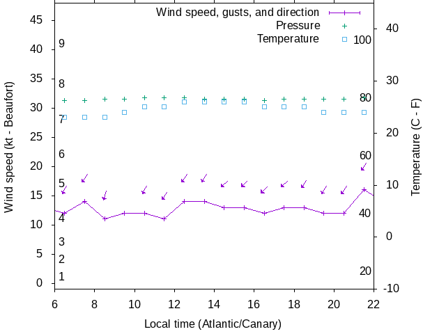 Dawn after 6:00; dusk before 22:00 local time (Atlantic/Canary).