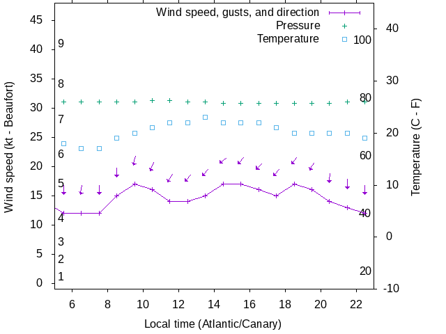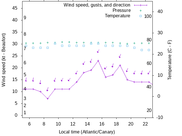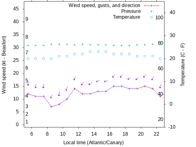 Dawn after 5:00; dusk before 23:00 local time (Atlantic/Canary).