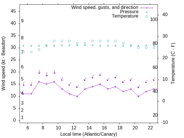 Dawn after 5:00; dusk before 23:00 local time (Atlantic/Canary).