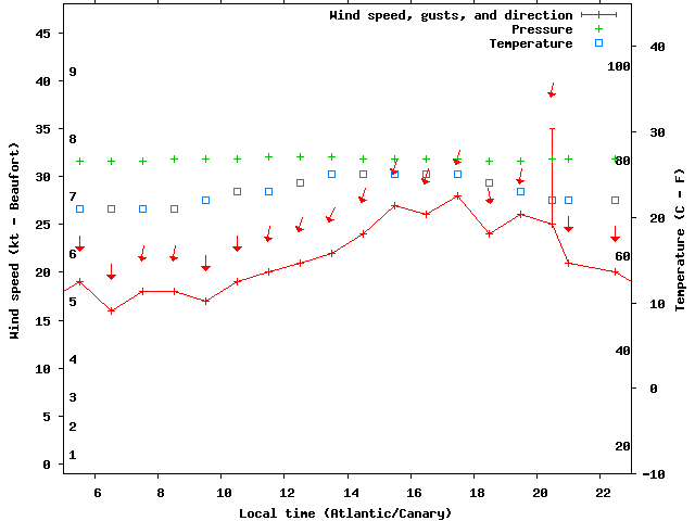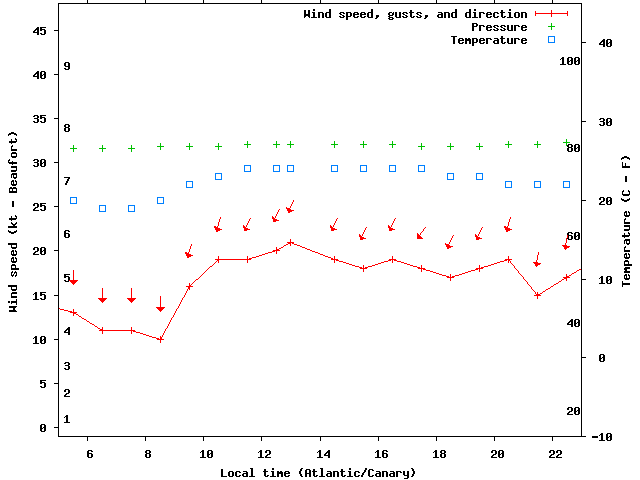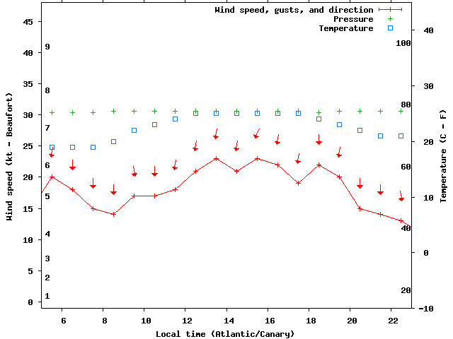 Dawn after 5:00; dusk before 23:00 local time (Atlantic/Canary).