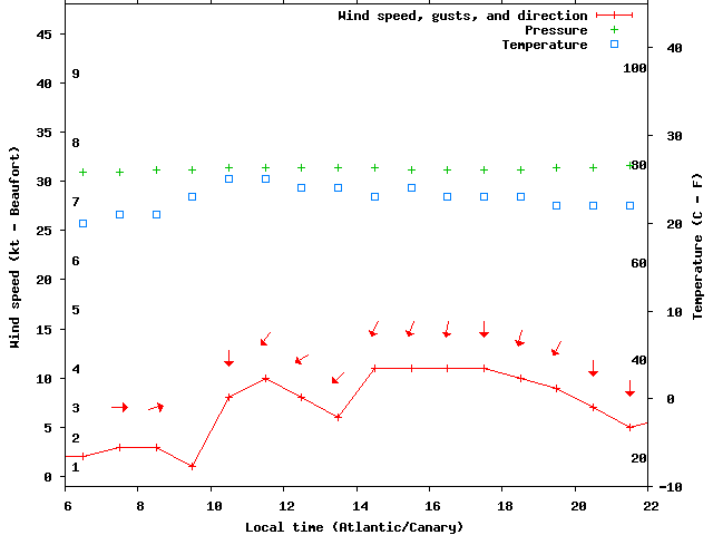 Dawn after 6:00; dusk before 22:00 local time (Atlantic/Canary).