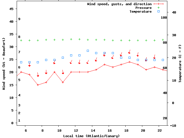 Dawn after 6:00; dusk before 22:00 local time (Atlantic/Canary).