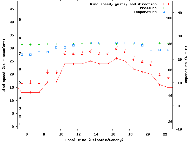 Dawn after 5:00; dusk before 23:00 local time (Atlantic/Canary).