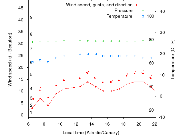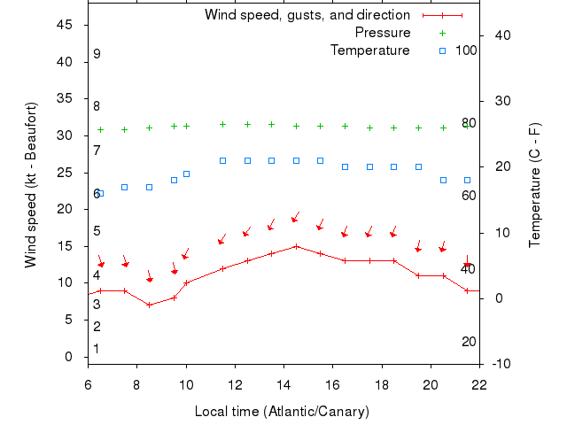 Dawn after 6:00; dusk before 22:00 local time (Atlantic/Canary).