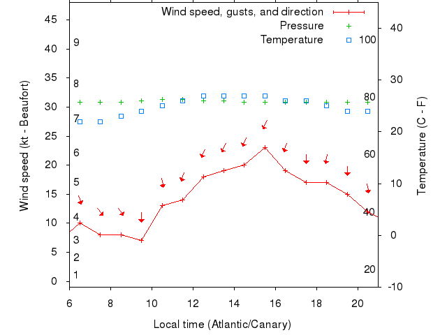 Dawn after 6:00; dusk before 21:00 local time (Atlantic/Canary).