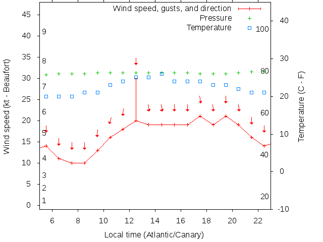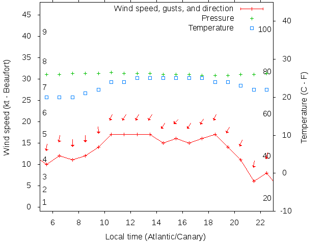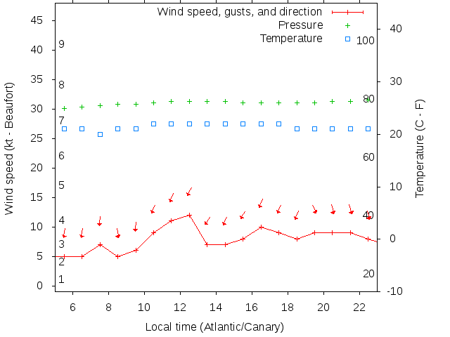 Dawn after 5:00; dusk before 23:00 local time (Atlantic/Canary).