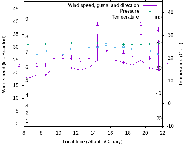 Dawn after 5:00; dusk before 23:00 local time (Atlantic/Canary).
