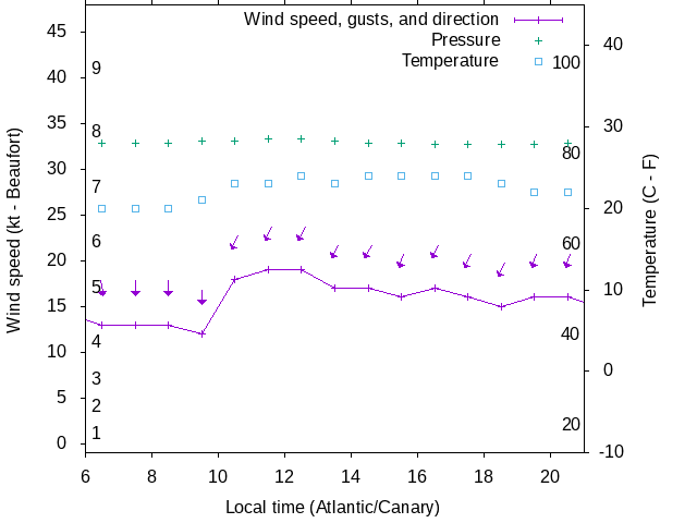 Dawn after 6:00; dusk before 21:00 local time (Atlantic/Canary).