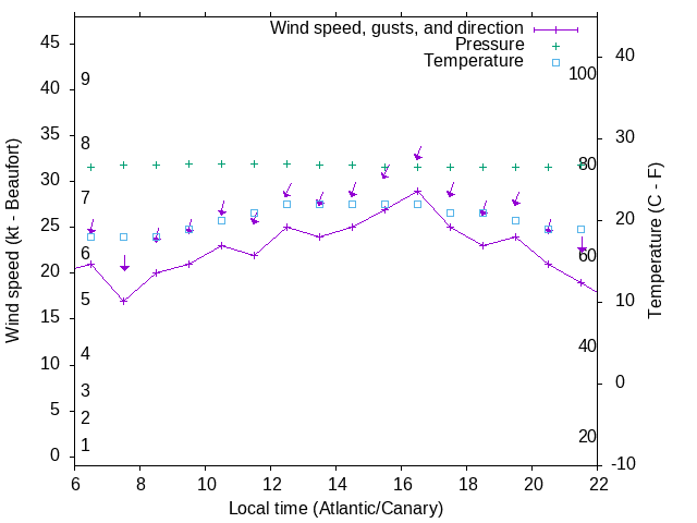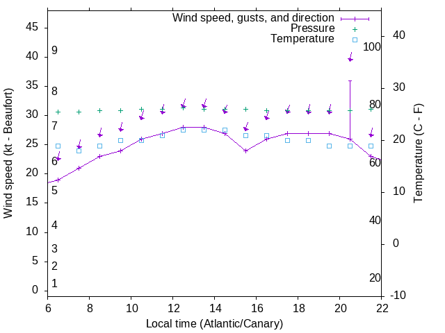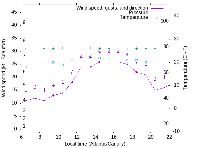 Dawn after 6:00; dusk before 22:00 local time (Atlantic/Canary).
