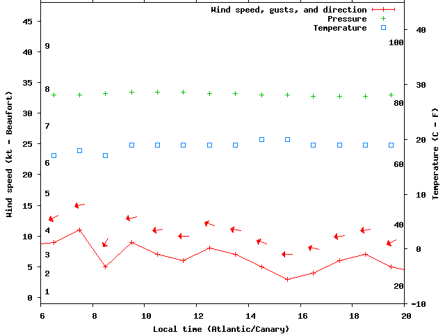 Dawn after 6:00; dusk before 20:00 local time (Atlantic/Canary).