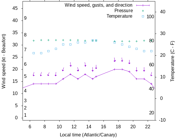 Dawn after 5:00; dusk before 23:00 local time (Atlantic/Canary).