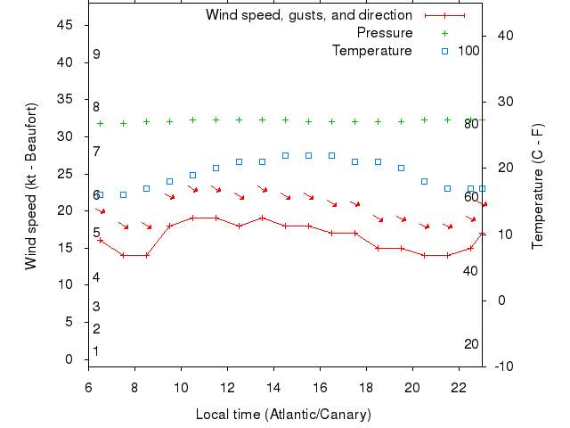 Dawn after 6:00; dusk before 23:00 local time (Atlantic/Canary).
