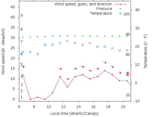 Dawn after 6:00; dusk before 21:00 local time (Atlantic/Canary).