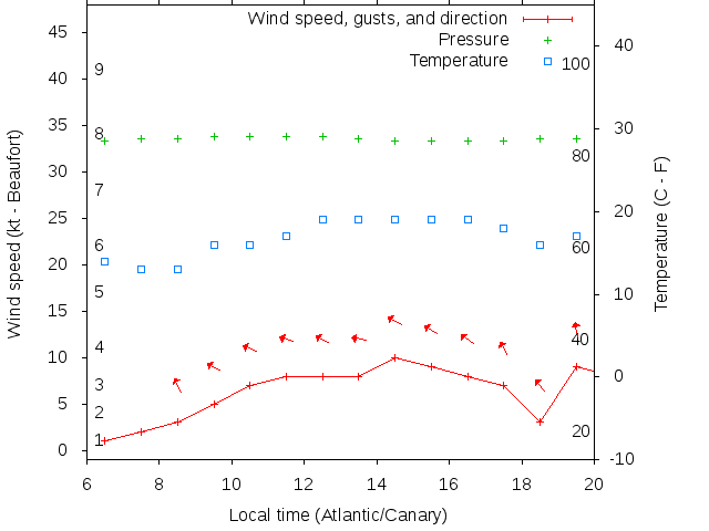 Dawn after 6:00; dusk before 20:00 local time (Atlantic/Canary).