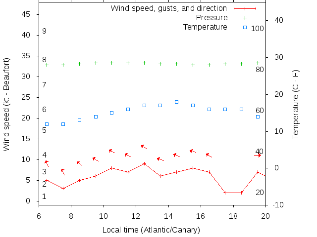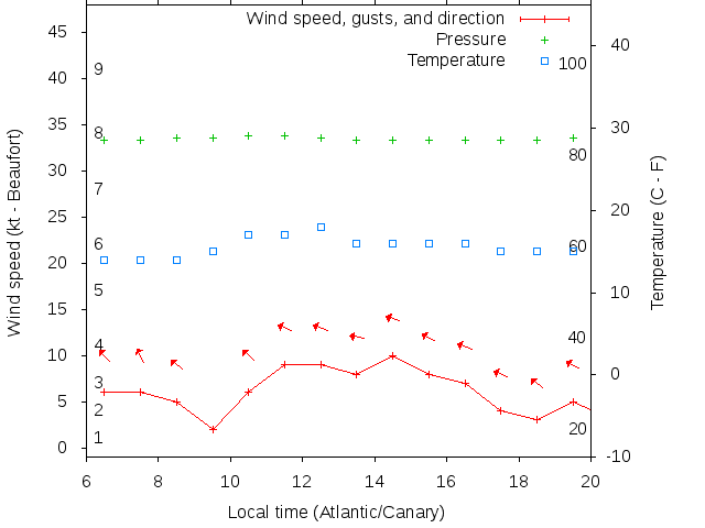 Dawn after 6:00; dusk before 20:00 local time (Atlantic/Canary).