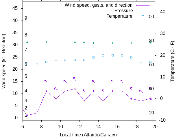 Dawn after 6:00; dusk before 20:00 local time (Atlantic/Canary).