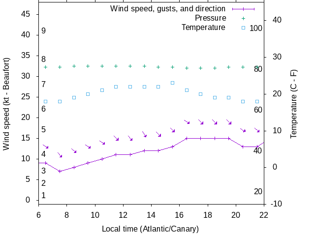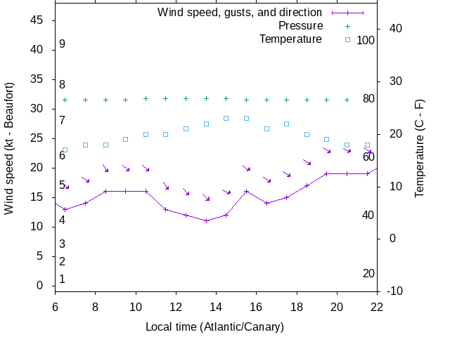 Dawn after 6:00; dusk before 22:00 local time (Atlantic/Canary).