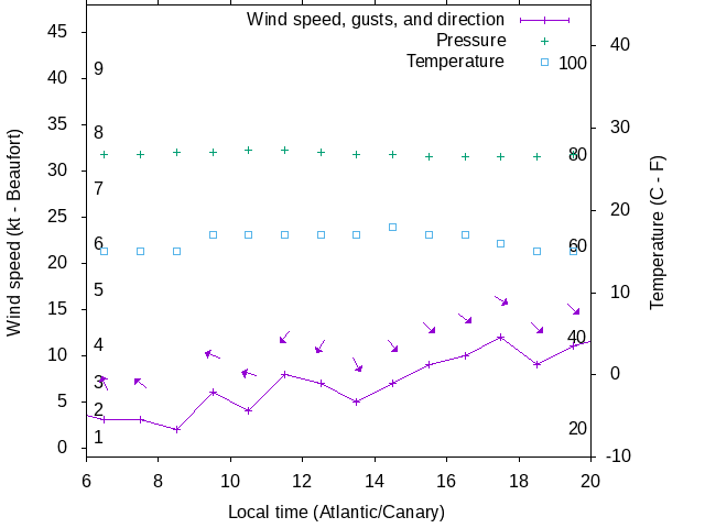 Dawn after 6:00; dusk before 20:00 local time (Atlantic/Canary).
