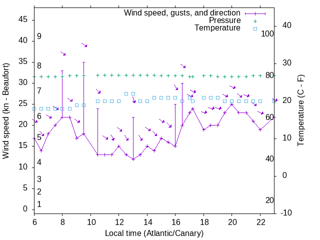 Dawn after 6:00; dusk before 23:00 local time (Atlantic/Canary).