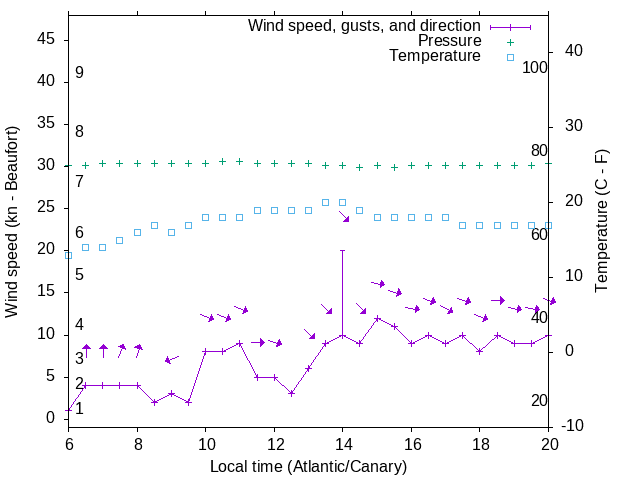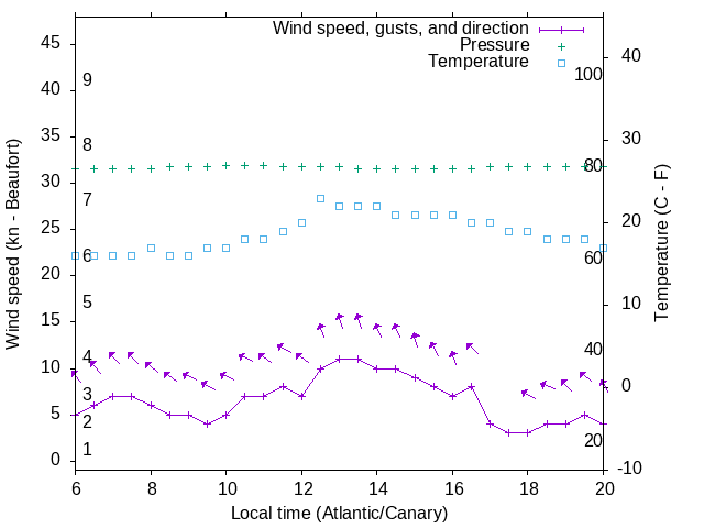 Dawn after 6:00; dusk before 20:00 local time (Atlantic/Canary).