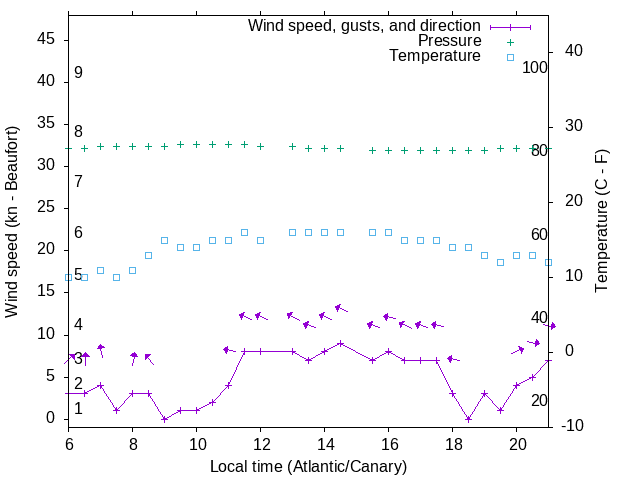 Dawn after 6:00; dusk before 21:00 local time (Atlantic/Canary).
