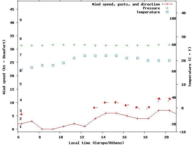 Dawn after 6:00; dusk before 21:00 local time (Europe/Athens).