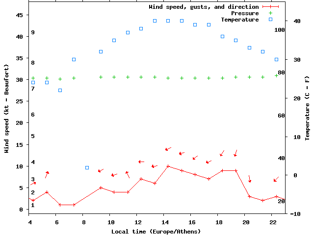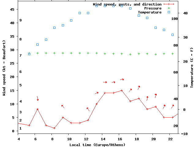 Dawn after 4:00; dusk before 23:00 local time (Europe/Athens).