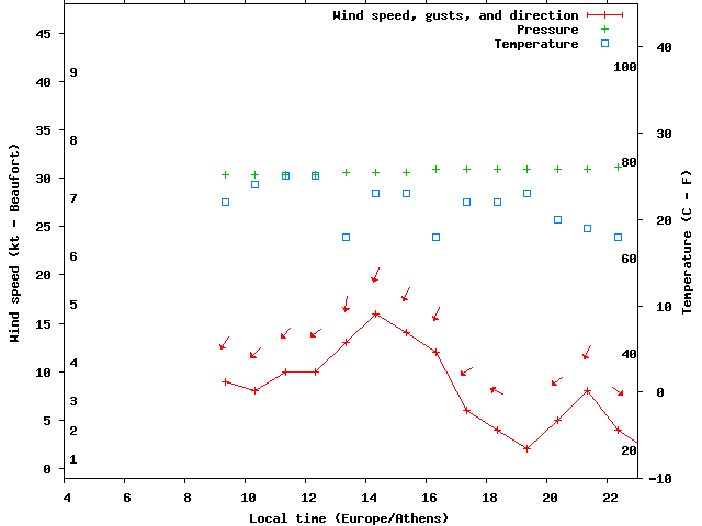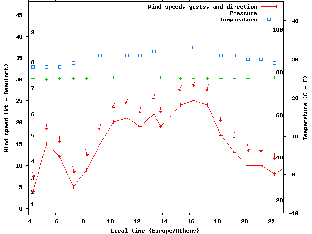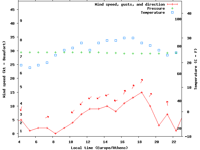 Dawn after 4:00; dusk before 23:00 local time (Europe/Athens).