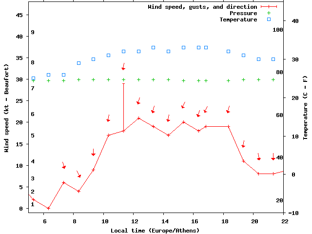 Dawn after 5:00; dusk before 22:00 local time (Europe/Athens).
