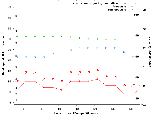 Dawn after 5:00; dusk before 19:00 local time (Europe/Athens).