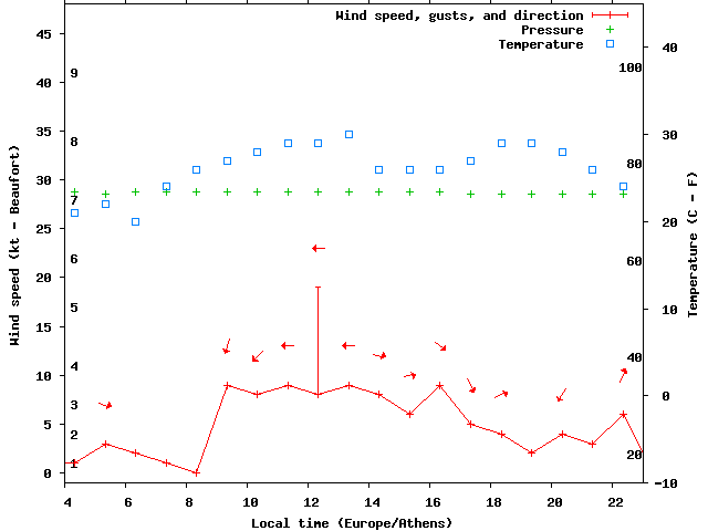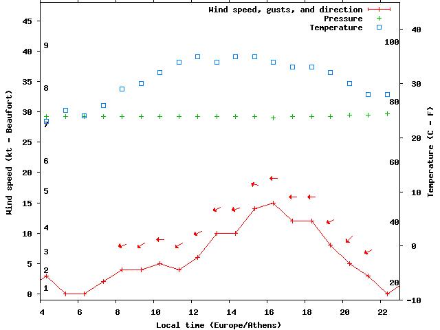 Dawn after 4:00; dusk before 23:00 local time (Europe/Athens).