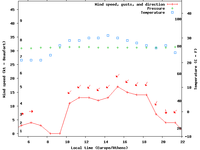 Dawn after 5:00; dusk before 22:00 local time (Europe/Athens).