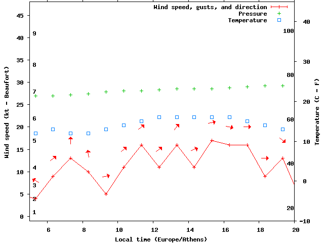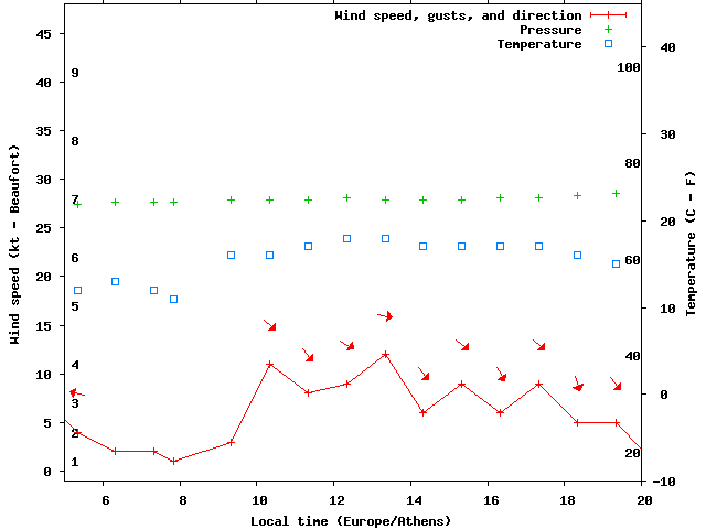 Dawn after 5:00; dusk before 20:00 local time (Europe/Athens).