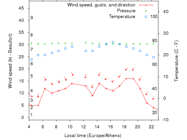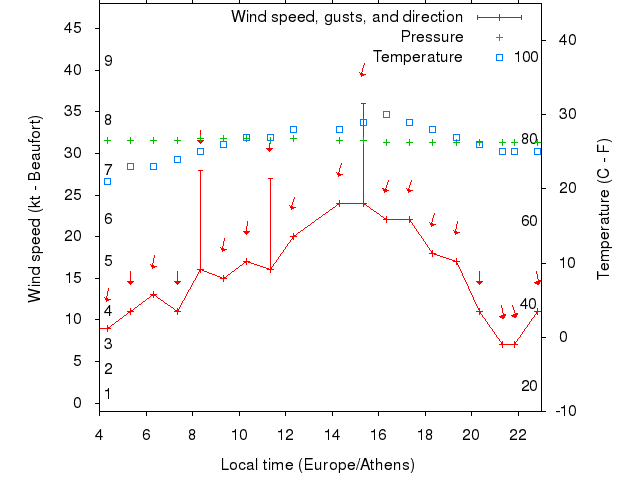 Dawn after 4:00; dusk before 23:00 local time (Europe/Athens).