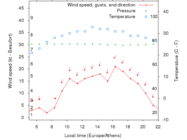 Dawn after 5:00; dusk before 22:00 local time (Europe/Athens).