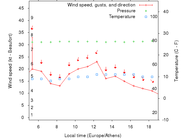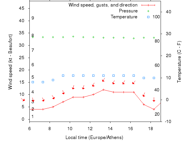 Dawn after 5:00; dusk before 19:00 local time (Europe/Athens).