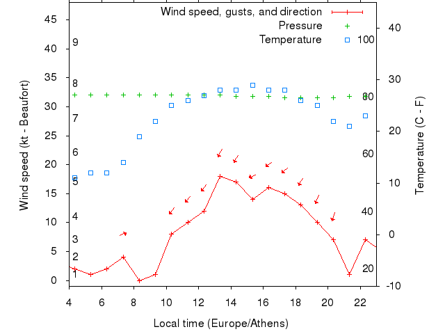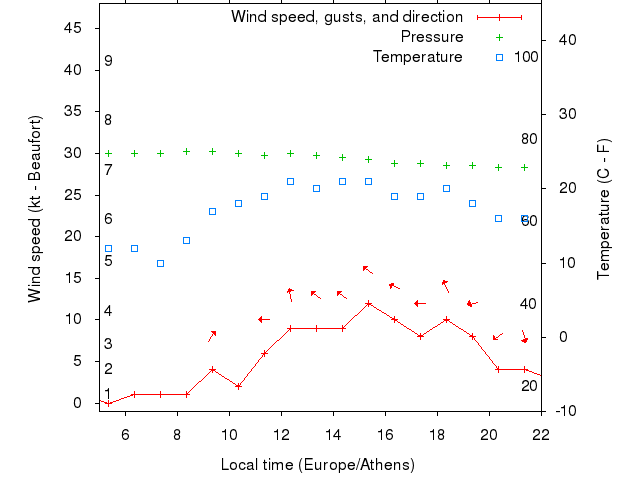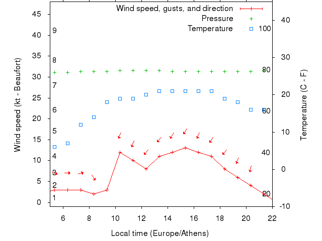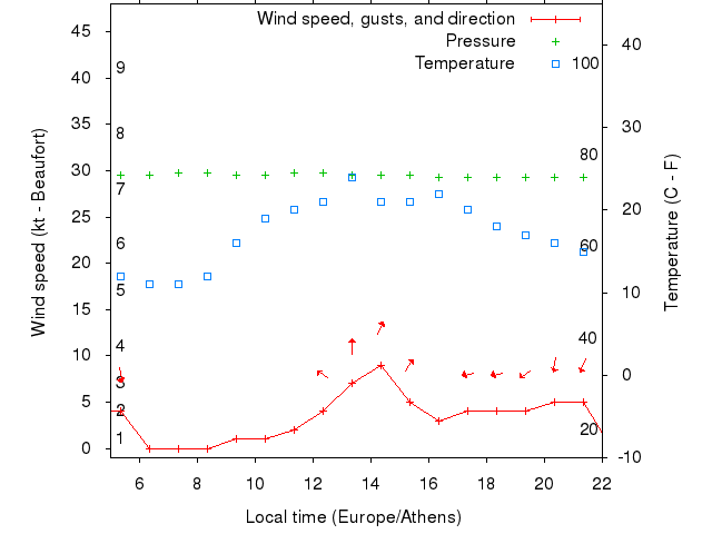 Dawn after 5:00; dusk before 22:00 local time (Europe/Athens).