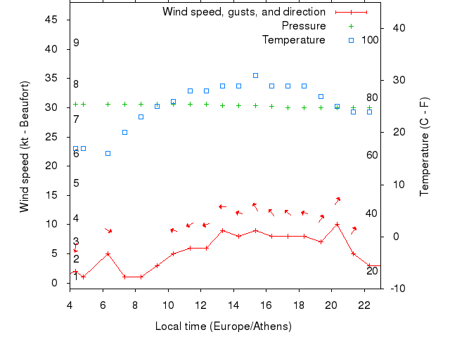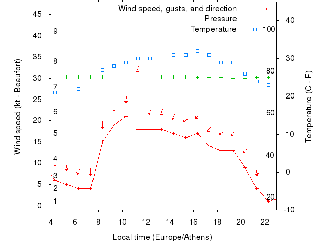 Dawn after 4:00; dusk before 23:00 local time (Europe/Athens).