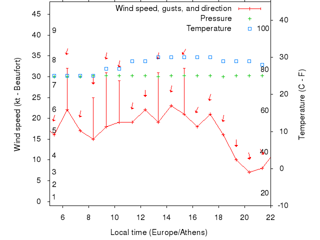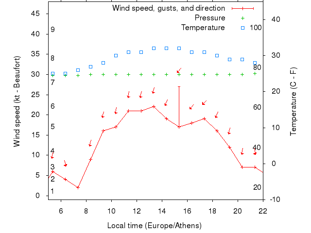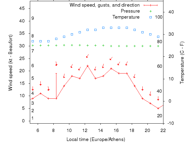 Dawn after 5:00; dusk before 22:00 local time (Europe/Athens).