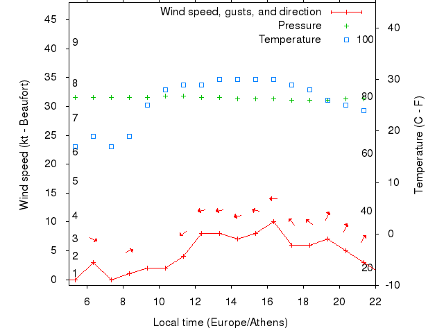 Dawn after 5:00; dusk before 22:00 local time (Europe/Athens).